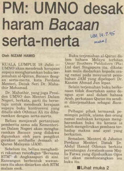 Utusan Malaysia, Rabu 19 Julai 1995,