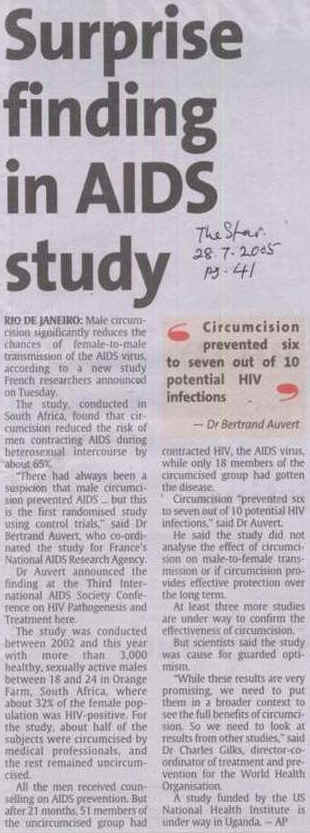 Tambahan pula, ia tidak muktamad, kerana menurut laporan akhbar yang disertakan, berjudul "Dapatan yang mengejutkan dalam kajian AIDS", di perengan ke-4 lajur kedua, sekurang-kurangnya tiga lagi kajian sedang dijalankan untuk memastikan keberkesanan berkhatan dalam perhubungan jenis tersebut.